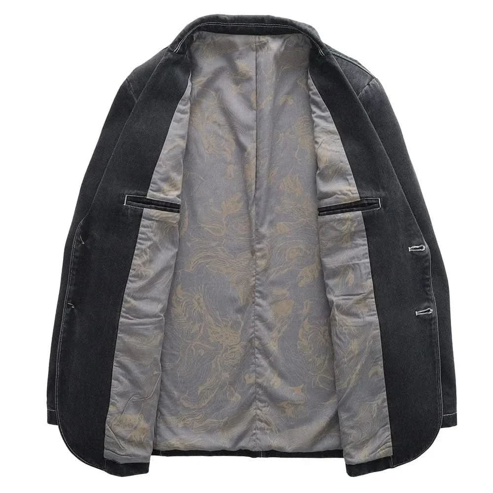 Deze blazer is gemaakt van een zware Italiaanse denim-katoenmix die tot in de perfectie is gestonewashed en vormt een brug tussen autoriteit in de directiekamer en verfijning in het weekend. Elk detail, van de contrasterende stiksels tot de met de hand aangebrachte knopen, straalt kwaliteit uit voor wie er verstand van heeft.