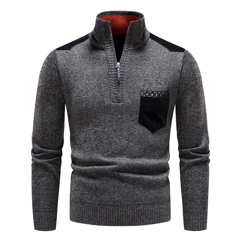 • Stijlvolle details: Contraststukken op de schouders en borstzak geven de trui een moderne, mannelijke uitstraling.